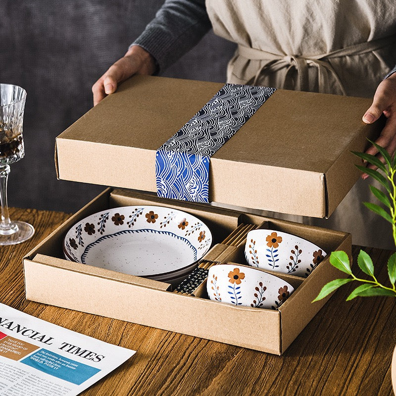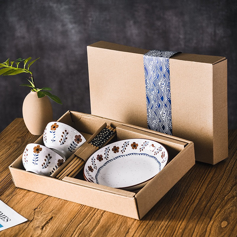 ELI B: Floral 3-pc plate + bowl set w/ chopsticks